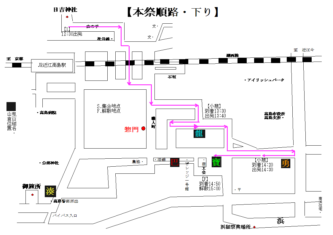 曳山巡行順路下り馬場拡大図