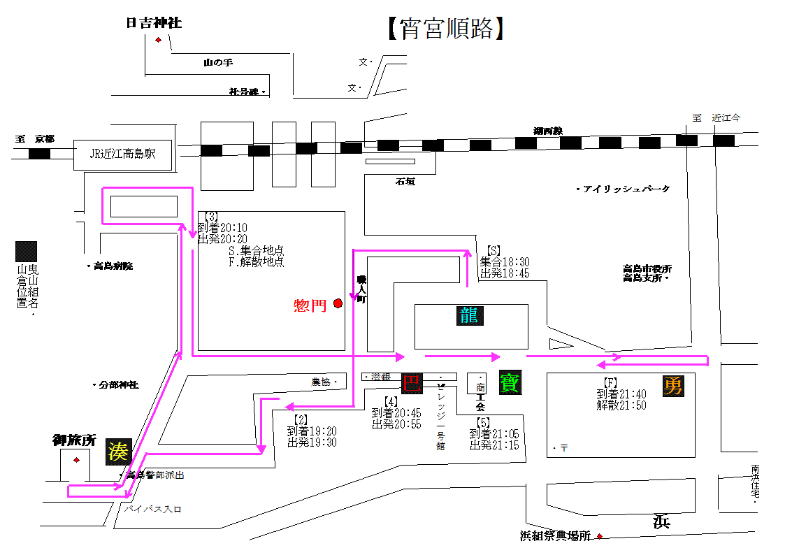 曳山の巡行路は花山が輪番制で変わるので、それに伴いその年によって変わります。その年の巡行路を表示します。