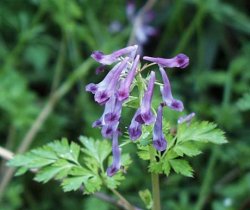 | 【備 考】学名/Corydalis incisa 別名/ヤブケマン ケシ科キケマン属 道端や林のふちなどで、やや湿ったところに生える2年草。 秋に芽生えて葉を地面に拡げて冬を越し、春に葉の中央から 花茎を伸ばして高さ20〜50cmになる。 全体に軟らかく、傷をつけると悪臭がある。 葉は有柄で、羽状に細かく切れ込む。 4〜6月、茎の上部にびっしりと総状の花がつき、長さ1〜 2cmの筒状で紅紫色、まれに白いものもある。花の先は唇 状にひらき、基部は袋のような距になって突出する。 先端に花が咲いていても、下部ではすでに長さ2cm弱の狭 長楕円形の果実が出来ている。 |