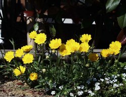 | 【備 考】学名/Chrysanthemum multicaule (Coleostephus myconis) キク科コレオステフス属(キク属とも) 地中海沿岸(ヨーロッパ、アルジェリア)原産の越年草で、日本には 1960年代に入ってきたとされる。 園芸上「ノース・ポール」と呼ばれる白花の「クリサンセマム・パル ドスム」がよく栽培されているが、「ムルチカウレ」もきれいな黄色 の花で、花壇などに植えられる。 「シュンギク」や「ハナワギク」がクリサンセマム属と分類され、こ れと別属であるらしいが、一般にキク属に与えられる属名でもあり、 分類が書物によって異なっている。 草丈は低く20cmていどで、横に広がる。葉はへら形で柔らかい。 4〜5月に直径2〜3cmの明るい黄金色の頭花を咲かせる。 |