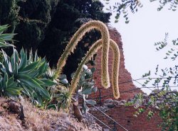 | 【備 考】学名/Agave attenuata リュウゼツラン科リュウゼツラン属 アメリカ大陸を中心に、世界の熱帯、亜熱帯の乾燥地に多い 多肉植物で、多くは観葉植物として利用される。 葉は放射状に多数つき、縁に刺状の突起がある。 アッテヌアタはメキシコの原産で、直径1mほどの株になり、 多くは湾曲した大きな4mほどの花穂をのばして、これに多 数の花がつく。 |