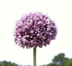 | 【備 考】学名/Allium giganteum ユリ科ネギ属 北半球に700種ほどが分布する大きな属で、花の美しい種が観賞用 に栽培される。鱗茎のある地下茎を持ち、葉は根生。 アリウム・ギガンテウムは中央アジア原産で、この仲間では最も大き な花を咲かせる。 葉は幅が広く、四方に広がる。 花期5〜6月。1mほどの花茎が伸び、頂きに藤桃色の花が密に集ま った球状の花穂をつける。花穂の直径は10〜15cmほど。 |