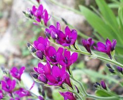 | 【備 考】学名/Babiana stricta 別名/バビアナ アヤメ科ホザキアヤメ(バビアナ)属 南アフリカのケープを中心に約60種が分布する多年草(球根草)。 日本には明治中期に渡来した。草丈約30cm、多くは直立し、葉は 数枚で披針形または剣状。草全体にうぶ毛がある。葉脈が隆起して縦 ひだとなる。 花期は春〜初夏、茎先に総状花序を作って直径2〜3cmの数花が咲 くが、園芸品種が多く、花色は青紫・赤・白・青と白の交互につくも |