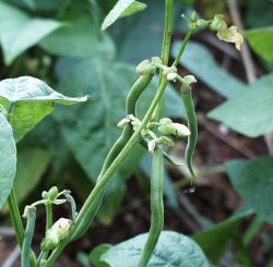 | 【備 考】学名/Phaseolus vulgaris 別名/ゴガツササゲ マメ科ゴガツササゲ属 熱帯アメリカ原産のつる性1年草。 葉は互生で、卵形の小葉が3個。 花は白色もしくは淡紅色の蝶形花で、花のあとに出来る未熟なさやを 食用とし、熟した種子を煮豆に用いる。 一般にインゲンマメと呼ばれるが、正しくはゴガツササゲで、本当の インゲンマメ(隠元豆)は豆果が幅広の半月形で若いさやを食用にす るフジマメ(Dolichos lablab)といわれる。 |