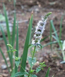 | 【備 考】学名/Mentha spicata シソ科ハッカ属 北半球の温帯や南アフリカなどに約25種が広く分布するハッカ属 は全草に清涼感のある芳香をもつものが多い。 匍匐性または高さ50〜100cmの立性のものがあり、スペアミ ントは立性。 葉は先がとがった楕円形で鋸歯と葉脈がめだち、茎や葉に軟毛があ る。 花期6〜8月、茎の頂きに唇形花が穂状に多数が集まって咲き、花 色は淡藤色、桃色、白色など。 ミントの仲間は種間で交雑しやすい。 |