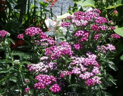 | 【備 考】学名/Achillea millefolium 別名/セイヨウノコギリソウ、アキレア、ミリフォリア キク科ノコギリソウ属 ヨーロッパと西アジアに分布する多年草で、アメリカや日本などに帰化 しており、園芸種はセイヨウノコギリソウの名で知られる。 高さ50〜60cmで、茎はほぼ直立し、綿毛に覆われている。 葉は鋸の歯のように細かい切れ込みがあって羽状、独特の臭気がある。 花期6〜8月、茎先に直径6〜8mmの小さい頭花が多数集まって咲き、 頭花の外側には5個の舌状花がある。花色は白・淡紅色・赤色など。 キバナノノコギリソウは花が黄色でコーカサス原産。 |