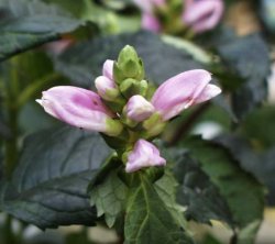 | 【備 考】学名/Chelone lyonii 別名/ジャコウソウモドキ、リオン ゴマノハグサ科ジャコウソウモドキ(ケローネ)属 北アメリカに4種が分布し、耐寒性の多年草で草丈70〜90cmに なる。葉は緑色または黒紫色、有柄で卵形、先端がとがり、対生。 花期7〜10月、茎の頂きに総状花序を作り、淡い藤紫色の2唇花を つける。下唇にひげ状の突起がある。白花の種もあり、またスピード ・リオンと呼ばれる種は早生系の品種を指す。 |