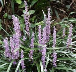 | 【備 考】学名/Liriope platyphylia ユリ科ヤブラン属 本州関東地方以南や台湾・中国にも分布する常緑の多年草。林の下草 として群生するが、丈夫でよく茂るので公園などのグラウンドカバー に利用される。根茎は太く短い。 葉は根生し線形で長さ30〜50cm幅0.8〜1.2cm、光沢がある 深緑色。 花期8〜10月、花茎が30〜50cmの高さに伸び、8〜12cm の花序に多数の淡紫色、楕円形で4mmほどの長さの花をつける。花 は1節に数個が集まってつく。 種子は露出した直径6〜7mmの球形で、熟して光沢の有る黒紫色に なる。 |