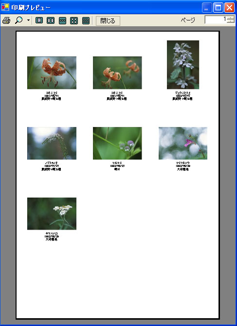 一覧表示を印刷。印刷サイズは長辺が約 5cm となる。