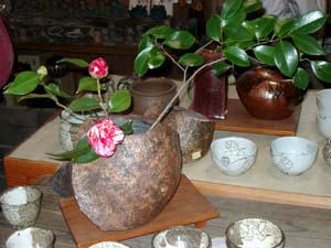 今回、つばきの小径を再生するプロジェクトの一環として、常滑やきもの散歩道Aコース途上に7ヶ所の店やギャラリーなどで様々に椿をあしらった作品展を開催しました。 |