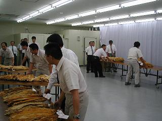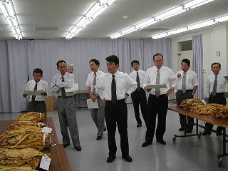 地区協議委員、立会人への説明会です。 平成16年度産適用標本葉たばこの確認、及び「協議束」の結果説明です。 |