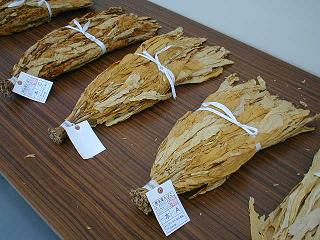 標本です。 下葉、中葉、合葉、、、今年も中葉系は素直で熟度もよく、高所得が期待出来そうです。 |