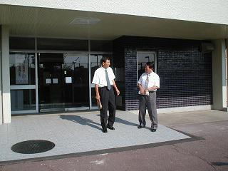 「JT中四国原料本部」玄関にて、、、 「井出監事さん」と「水岡理事さん」、、、地区協議委員等への説明会が終了し、心なしか開放感が感じられますね。。。^^; |