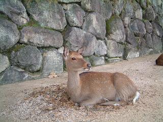 厳島神社の鹿です。 ここでは鹿は神様の遣いとして大事に扱われています。 |
