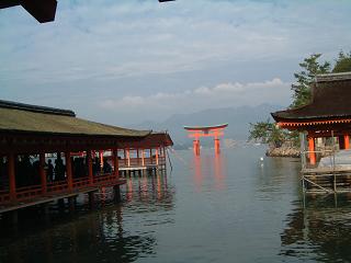 厳島神社の朱丹の大鳥居は、観光日本のシンボルとして 外国にも広く知られています。 |