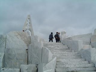 耕三寺の「未来心の丘」です。 「大理石」はイタリアのトスカーナ地方から輸入され、 丘へ運搬するにはヘリコブターが使われたそうです。 |